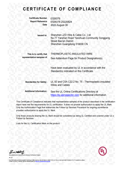 深圳建圳達電線電纜有限公司,成立于2000年,是一家電線電纜制造商,我們通過了世界各地不同市場的多數(shù)認證,如:CCC、RoHS、CB、SAA、TUV、VDE、PSE、BPS、UL、CSA。我們根據(jù)定制產品不斷更新新的認證。經過數(shù)十年的發(fā)展,我們與來自世界各地的客戶建立了長期的合作關系。我們曾經是菲律賓機場,,柬埔寨的電力站,美國的醫(yī)院,工廠,埃塞俄比亞的水電站項目。我們是一家值得信賴的電線供應商。
